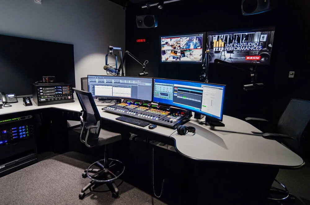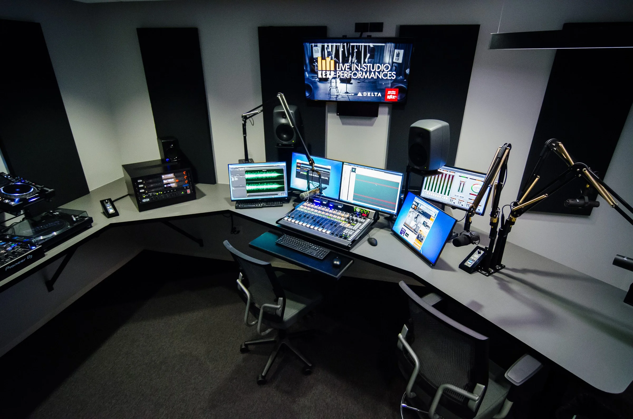 New broadcast radio facility including studios, production spaces, video production and technical core.