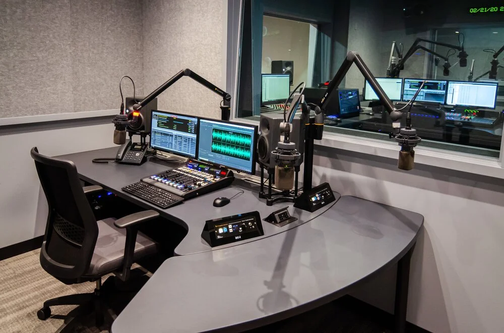 New broadcast radio facility including studios, production spaces, and technical core.